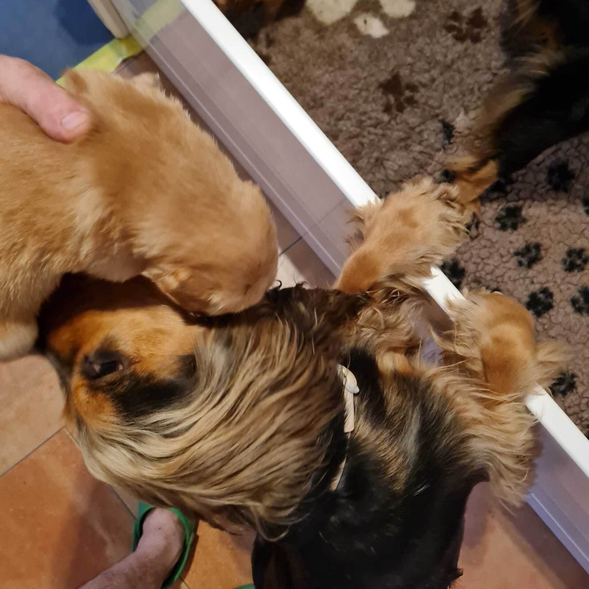 Die Welpen entwickeln sich super, es sind kleine Wonneproppen geworden und jetzt sind auch die Augen und Ohren offen. Sie erkunden die erweiterte Wurfkiste, kabbeln sich schon fleißig und halten uns und Mutter Rolle auf Trapp. Die ersten Eigenarten werden erkennbar und auch die Entwicklung des Fells lässt auf kleine Plüschpopos schließen.